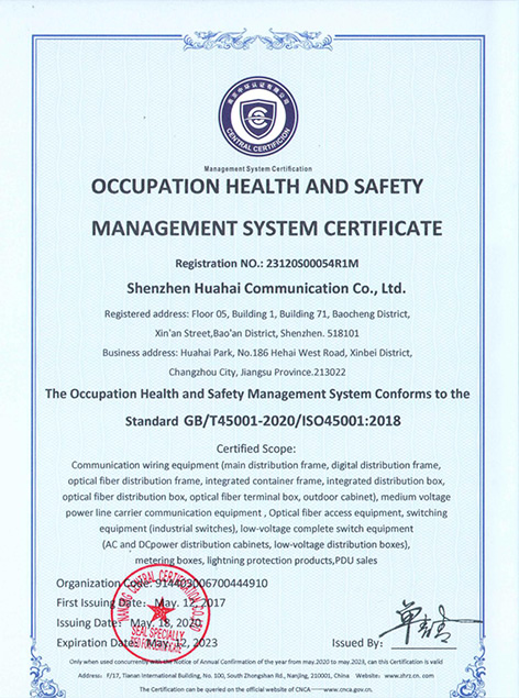 | ISO45001職業(yè)健康安全管理體系認證證書 |